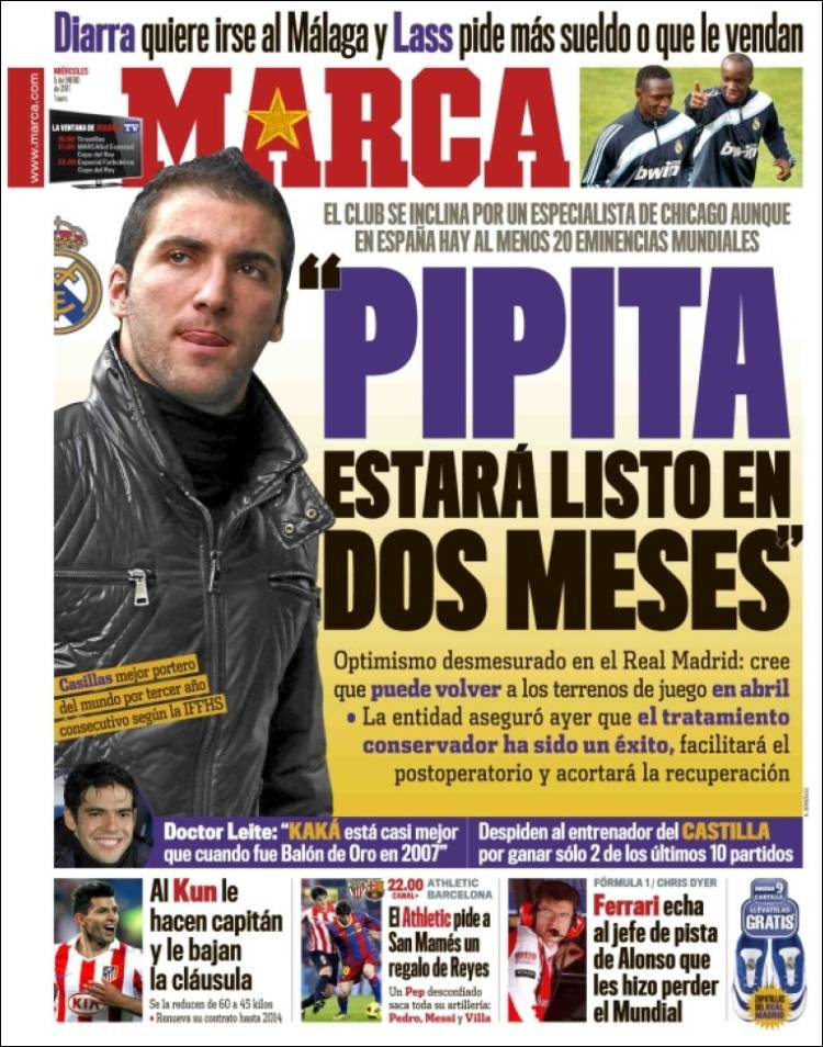 MARCA HIGUAIN REAL MADRID – Sul quotidiano Marca si parla delle condizioni fisiche di Higuain, il Real Madrid ha dichiarato che il giocatore tornerà tra due mesi.