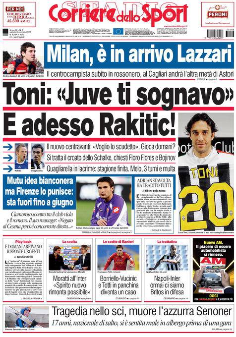 CORRIERE JUVENTUS TONI – Anche il Corriere dello Sport parla del calciomercato Juventus con la presentazione ufficiale di Luca Toni che si è detto felice di indossare la maglia bianconera.