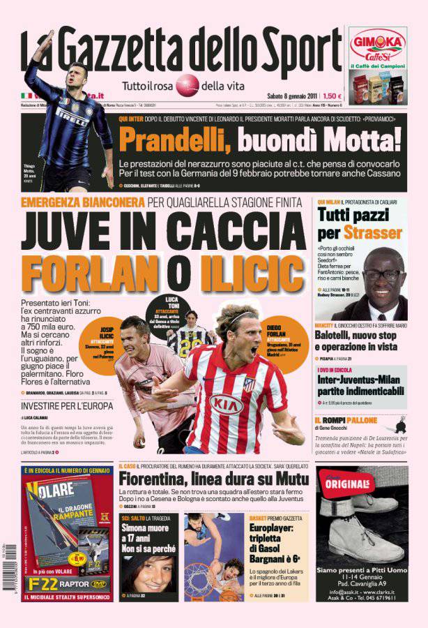 GAZZETTA JUVE FORLAN ILICIC – Sulla Gazzetta dello Sport si parla del calciomercato della Juventus che ieri ha presentato Toni, ma Marotta ha in serbo un altro colpo per l’attacco.