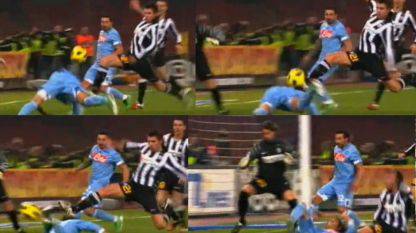 A chiarire il dubbio è il replay dal lato opposto a quello solito della tribuna del San Paolo, dove sono collocate le telecamere principali delle tv. Si vede l’assist di Lavezzi per Hamsik, il cross dello slovacco e il tuffo del Matador sul secondo palo che viene scavalcato dal pallone (si distingue chiaramente la testa già avanti) e il tocco di tacco destro che non lascia scampo a Storari. Colpo cercato o fortunato? Non sembrano esserci dubbi, perché si vede chiaramente Cavani che va a cercare proprio quel tipo di impatto.
