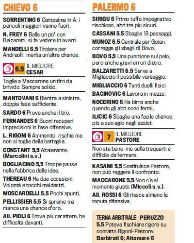 FANTACALCIO SERIE A GAZZETTA CHIEVO PALERMO PAGELLE – Zero a zero al Bentegodi tra Chievo e Palermo. Un match abulico privo di emozioni. La Gazzetta dello Sport premia Pastore e Cesar come i due migliori in campo del match. Ecco le pagelle.