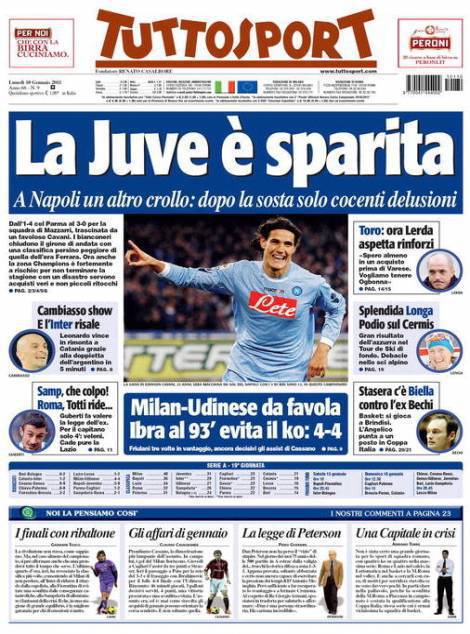 TUTTOSPORT JUVENTUS – Sul quotidiano torinese Tuttosport si parla del momento nero della Juventus che in questo 2011 ha perso due volte contro Parma e Napoli.