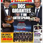 MARCA PALLONE D’ORO BLATTER – Il quotidiano Marca è polemico nei confronti del presidente Fifa Blatter definito come un antispagnolo. Applausi invece per Messi e Mourinho vincitori del Fifa Pallone d’Oro 2010 per la categoria calciatore e allenatore.