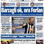 TUTTOSPORT BARZAGLI FORLAN – Anche il quotidiano torinese Tuttosport parla dell’imminente acquisto di Barzagli dal Wolfsburg e del possibile arrivo di Forlan dall’Atletico Madrid.