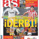As: In Coppa è un’altra storia 13/01/2011 di Ruggieri AS COPPA DERBY – Sull’altro quotidiano spagnolo As si parla del derby di Madrid in programma questa sera in Copa del Rey. Ieri il Barcellona ha schiantato cinque a zero il Betis Siviglia. Claudio Ruggieri – www.calciomercatonews.com