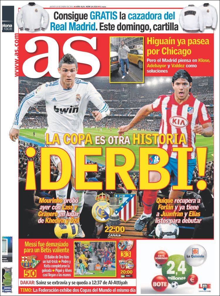 AS COPPA DERBY – Sull’altro quotidiano spagnolo As si parla del derby di Madrid in programma questa sera in Copa del Rey. Ieri il Barcellona ha schiantato cinque a zero il Betis Siviglia.
