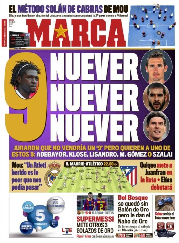 MARCA CALCIOMERCATO REAL MADRID – Sul quotidiano spagnolo Marca si parla del calciomercato del Real Madrid con Mourinho alla ricerca di un numero nove dopo l’infortunio di Higuain.