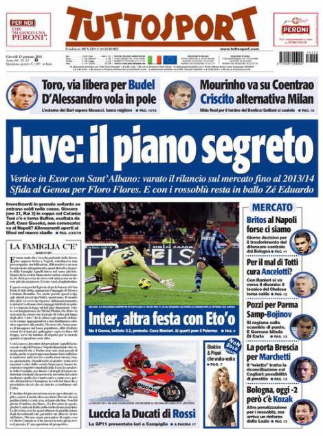 TUTTOSPORT CALCIOMERCATO JUVENTUS – Su Tuttosport si parla del calciomercato Juventus con la famiglia Agnelli che ha varato le strategie di mercato fino al 2013/2014.