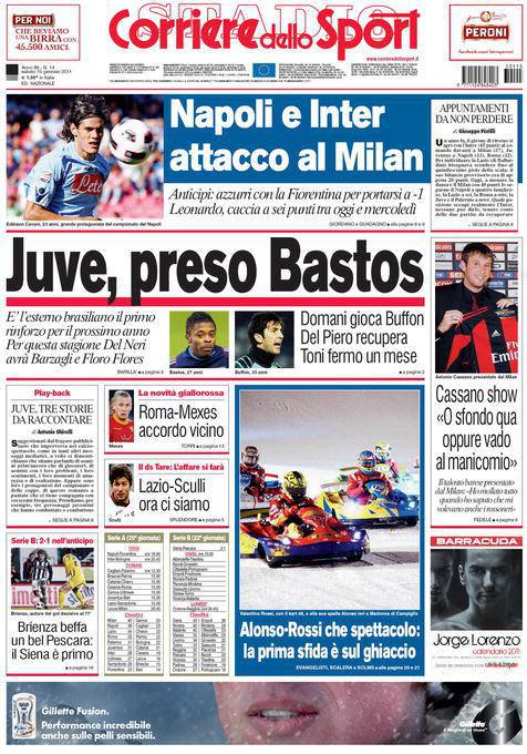CORRIERE JUVENTUS BASTOS – Sul Corriere dello Sport si parla del calciomercato Juventus con i bianconeri che avrebbero messo a segno il colpo Bastos per la prossima stagione.