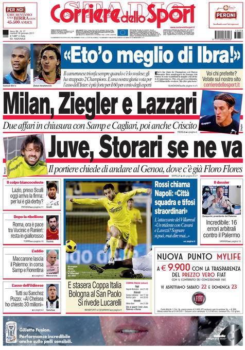 CORRIERE MILAN CALCIOMERCATO – Sul Corriere dello Sport si parla del calciomercato Milan con il probabile arrivo di Lazzari dal Cagliari e la novità Ziegler dalla Sampdoria.