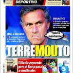 Mundo Deportivo: TerreMouto 20/01/2011 di Ruggieri MUNDO DEPORTIVO MOURINHO – Gioco di parole da parte del quotidiano Mundo Deportivo che scherza con la situazione pesante che si vive al Real Madrid con il tecnico Mourinho contro il dirigente Valdano. Claudio Ruggieri – www.calciomercatonews.com