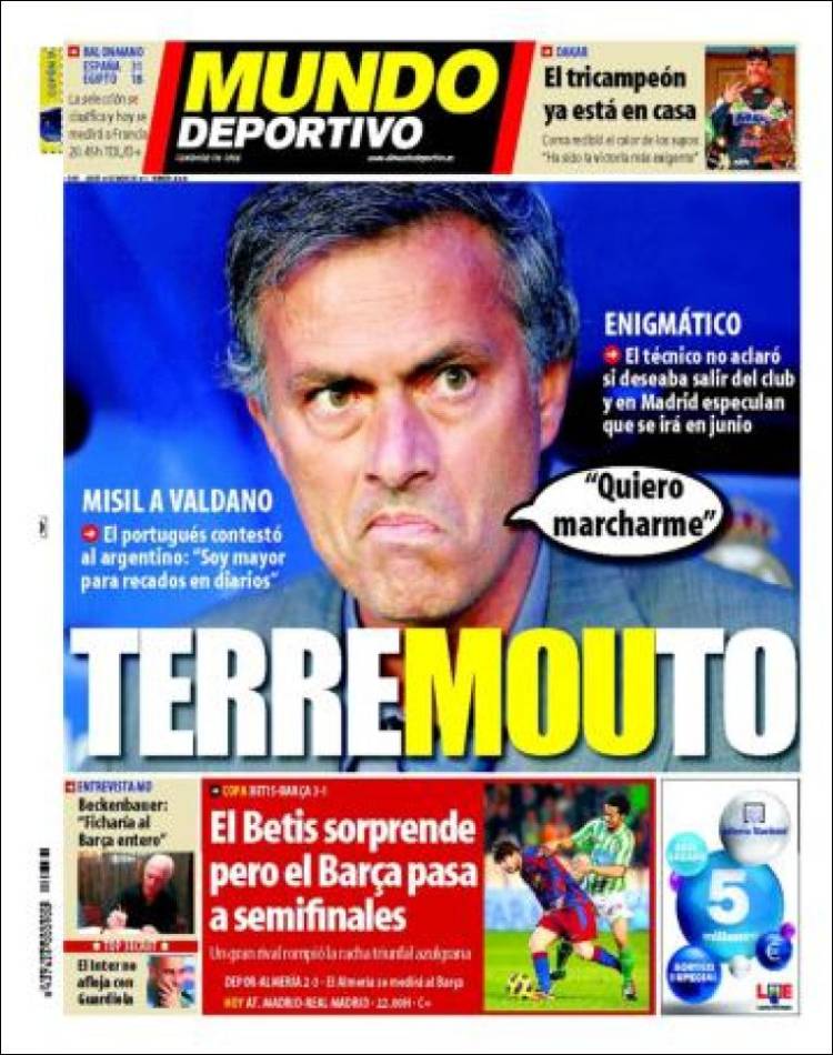 MUNDO DEPORTIVO MOURINHO – Gioco di parole da parte del quotidiano Mundo Deportivo che scherza con la situazione pesante che si vive al Real Madrid con il tecnico Mourinho contro il dirigente Valdano.