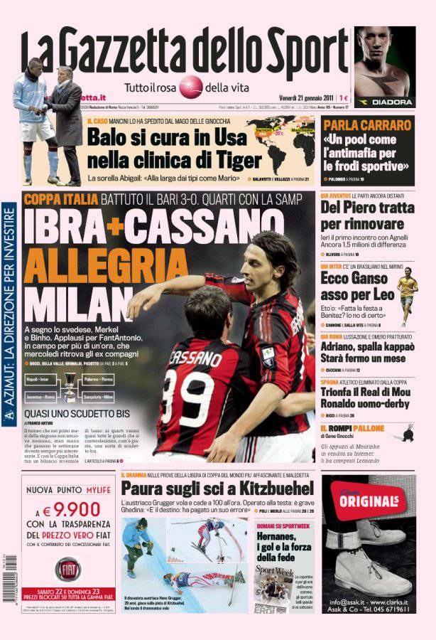 GAZZETTA IBRA CASSANO – Sulla Gazzetta dello Sport si parla della vittoria del Milan sul Bari per tre a zero negli ottavi di finale di Coppa Italia.