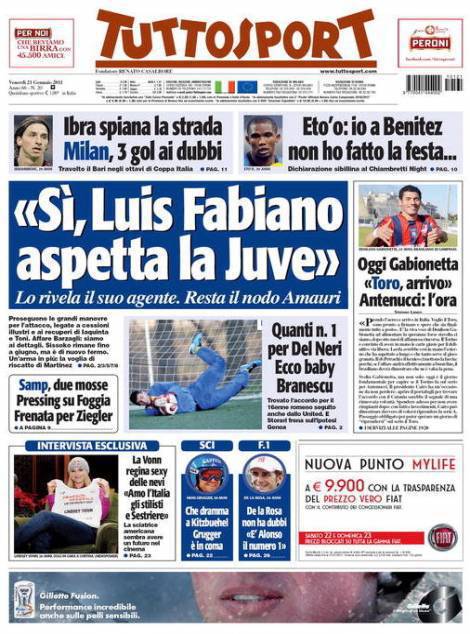 TUTTOSPORT LUIS FABIANO CALCIOMERCATO – Sul quotidiano Tuttosport si parla del calciomercato Juventus e in particolare dell’affare Luis Fabiano.