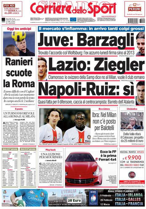 CORRIERE JUVENTUS BARZAGLI – Sul Corriere dello Sport si parla dell’imminente arrivo alla Juventus di Barzagli, difensore italiano prelevato dal Wolfsburg.
