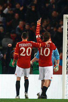 ROMA CAGLIARI VOTI TABELLINO PAGELLE / Roma-Cagliari 3-0 (1-0). Roma (4-3-1-2): Julio Sergio 6, Cassetti 5, Mexes 7, Juan 6, Riise 6.5, Taddei 5.5 (21′ st Menez 6.5), De Rossi 6, Simplicio 6, Perrotta 6.5, Totti 6.5 (49′ st Brighi sv), Borriello 6.5 (21′ st Vucinic 6) (32 Doni, 3 Castellini, 25 Burdisso G., 87 Rosi). All.: Ranieri 6.5. Cagliari (4-3-1-2): Agazzi 5, Pisano 5, Canini 5, Astori 5.5, Agostini 5.5, Biondini 6, Nainggolan 5 (33′ st Laner sv), Conti 6, Cossu 6.5, Nenè 5 (19′ st Matri 5.5), Acquafresca 5.5 (45′ st Ragtzu sv) (25 Pelizzoli, 3 Ariaudo, 24 Perico, 28 Magliocchetti). All.: Donadoni 5.5. Arbitro: Gava di Conegliano 5.5. Reti: nel pt, 22′ Totti (rigore); nel st 25′ Perrotta, 47′ st Menez. Angoli: 9 a 6 per il Cagliari. Recupero: 1′ e 5′. Ammoniti: Conti, Canini, Taddei, Nainggolan per gioco scorretto Spettatori: 27mila circa. *** I GOL – 21′ pt: cross di Totti, Canini commette un’ingenuità in area trattenendo De Rossi. Gava non ha dubbi, ammonisce il difensore del Cagliari e fischia il rigore per la Roma che Francesco Totti realizza con un tiro potente centrale su cui Agazzi non può nulla. – 24′ st – angolo calciato da Totti, Juan di testa e Agazzi non trattiene, e Perrotta è veloce a mettere dentro il pallone a due passi dalla linea di porta. – 47′ st – Vucinic serve per Menez che se ne va da solo verso la porta, dribbla il portiere del Cagliari e segna la rete del 3-0.
