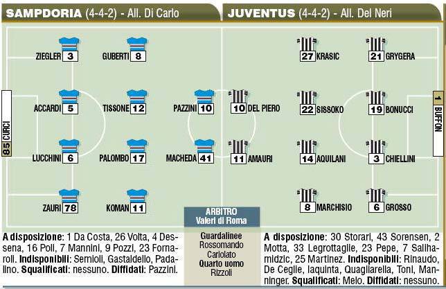 FANTACALCIO SERIE A SAMPDORIA JUVENTUS FORMAZIONI – Da Marassi un match che riserverà grandi emozioni tra due squadre che fanno dell’italianità una delle loro bandiere: la sfida tra Sampdoria e Juventus non sarà probabilmente il trionfo del calcio spettacolo ma un match grintoso in cui entrambe le contendenti vogliono la posta in palio. Del Neri ritrova qui a Marassi il suo recente passato, la squadra che ha portato ai preliminari di Champions solo l’anno scorso e che ora con la partenza di Cassano ha perso la sua stella. Ecco le formazioni: