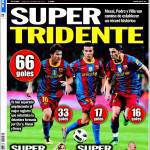 Sport: Super tridente 24/01/2011 di Ruggieri SPORT BARCELLONA TRIDENTE – Sull’altro quotidiano catalano Sport si parla del tridente d’attacco del Barcellona formato da Villa-Messi-Pedro che hanno già segnato 66 gol in stagione. Claudio Ruggieri – www.calciomercatonews.com