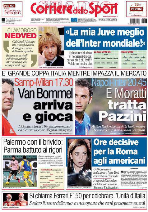 Corriere dello Sport: E Moratti tratta Pazzini 26/01/2011 di Ruggieri CORRIERE MORATTI PAZZINI – Sul Corriere dello Sport si parla del calciomercato Inter con i nerazzurri molto vicini a prendere Pazzini della Sampdoria. Claudio Ruggieri – www.calciomercatonews.com