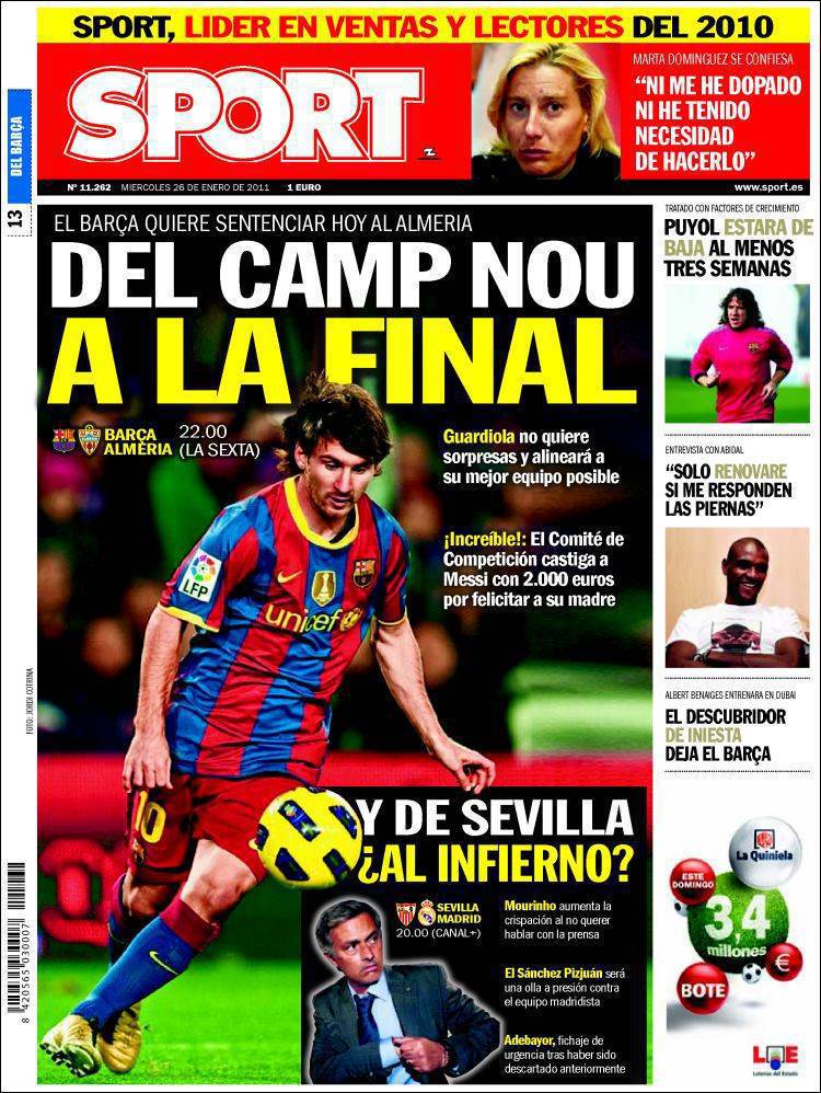 SPORT CAMP NOU FINALE – Questa sera semifinale d’andata di Coppa del Re per il Barcellona contro l’Almeria. Messi e soci vogliono chiudere la qualificazione al Camp Nou.