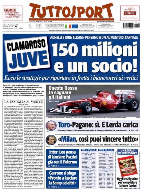 TUTTOSPORT JUVENTUS – Sul quotidiano Tuttosport si parla di un aumento di capitale della Juventus e dell’ingresso di un socio all’interno della dirigenza.