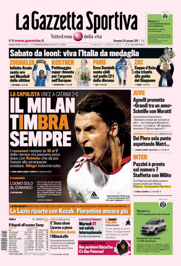 GAZZETTA MILAN – Sulla Gazzetta dello Sport si parla della vittoria del Milan per due a zero sul campo del Catania nonostante l’inferirità numerica.