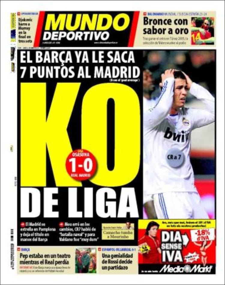 MUNDO DEPORTIVO REAL MADRID – Il quotidiano catalano Mundo Deportivo parla ormai di Liga finita visti i sette punti di vantaggio del Barcellona sul Real Madrid.