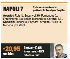 CALCIOMERCATO NAPOLI VOTI BILANCIO ACQUISTI CESSIONI – Di seguito trovate il quadro completo relativo al calciomercato di riparazione 2011 del Napoli. Troverete il voto alle varie trattative, l’elenco completo degli obiettivi e degli acquisti e infine il bilancio economico, il saldo fra entrate e uscite. Vi ricordiamo che il voto, il bilancio economico e l’elenco delle varie operazioni sono cura della redazione de La Gazzetta dello Sport.