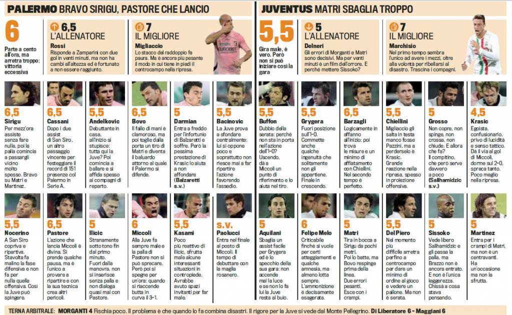 FANTACALCIO SERIE A VOTI PAGELLE GAZZETTA PALERMO JUVENTUS- Di seguito, in foto, i voti e le pagelle assegnati dalla Gazzetta ai protagonisti delle partita di Serie A Palermo-Juventus.