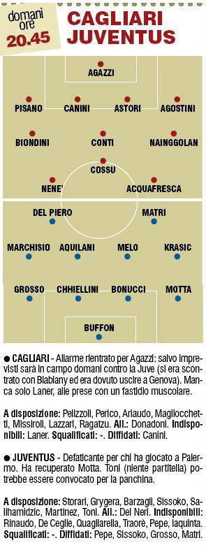 FANTACALCIO CAGLIARI-JUVENTUS PROBABILI FORMAZIONI- Di seguito, in foto, le probabili formazioni di Cagliari-Juventus secondo il Corriere dello Sport. Le due squadre si affronteranno sabato sera alle 20,45.