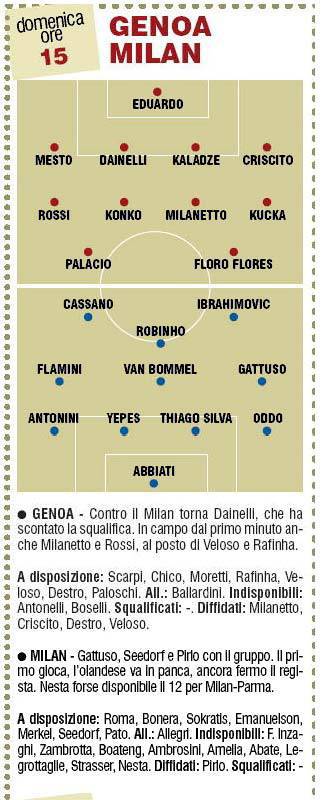 FANTACALCIO SERIE A GENOA-MILAN PROBABILI FORMAZIONI- Di seguito, in foto, le probabili formazioni di Genoa-Milan secondo Il Corriere dello Sport.