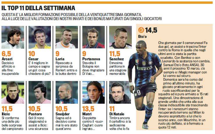 FANTACALCIO TOP 11 24ESIMA SERIE A FOTO – Di seguito trovate la top 11 della ventiquattresima giornata di Serie A giocatasi lo scorso weekend. I migliori 11 della giornata sono a cura della redazione de La Gazzetta dello Sport.