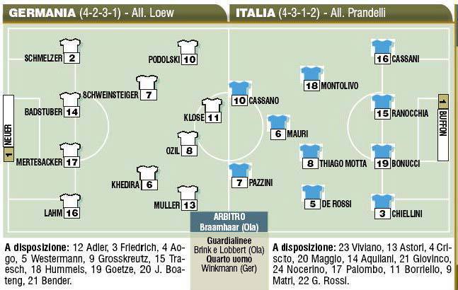 GERMANIA-ITALIA PROBABILI FORMAZIONI FOTO – Di seguito trovate le probabili formazioni dell’amichevole in programma questa sera fra Germania e Italia in quel di Dortmund. Spicca su tutti la coppia Cassano-Pazzini, ricreata da Prandelli dopo l’addio alla Samp. Le probabili formazioni di Germania-Italia sono a cura del Corriere dello Sport.