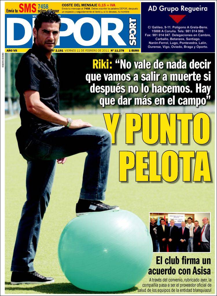RASSEGNA STAMPA ESTERA DEPOR SPORT- Il giornale spagnolo Depor Sport apre con le dichirazioni di Riki, attaccante del Deportivo La Coruna, che ha dichiarato che non serve a niente dire che il club si salverà dalla retrocessione prima di aver conquistato la salvezza sul campo.