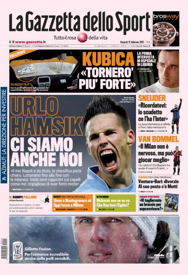 GAZZETTA HAMSIK NAPOLI – Sulla Gazzetta dello Sport intervista esclusiva a Marek Hamsik centrocampista del Napoli che parla della corsa scudetto.
