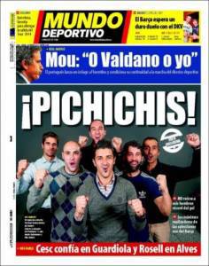 RASSEGNA STAMPA ESTERA MUNDO DEPORTIVO ATTACCANTI- Mundo Deportivo dedica la sua copertina odiern ai “segnapunti” delle squadra catalane dei maggiori sport, ossia i giocatori che hanno il compito di segnare punti per la rispettiva squadra. Si parla in particolare di Villa (calcio), Epi (basket), Juanin (pallamano), Estiarte (pallanuoto), Javi Rodriguez (calcio a 5) e Pol Amat (hockey su erba).