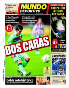 MUNDO DEPORTIVO / Fotonotizia de “El Mundo Deportivo” dedicata al salvatore di ieri sera David Villa, che con un gol all’80 minuto è riuscito a pareggiare una partita che si era messa in salita per il Barça. 1-1 con lo Sporting Gijon ed il Real Madrid festeggia per aver l’occasione di rosicchiare 2 punti alla corsa degli Azulgrana.