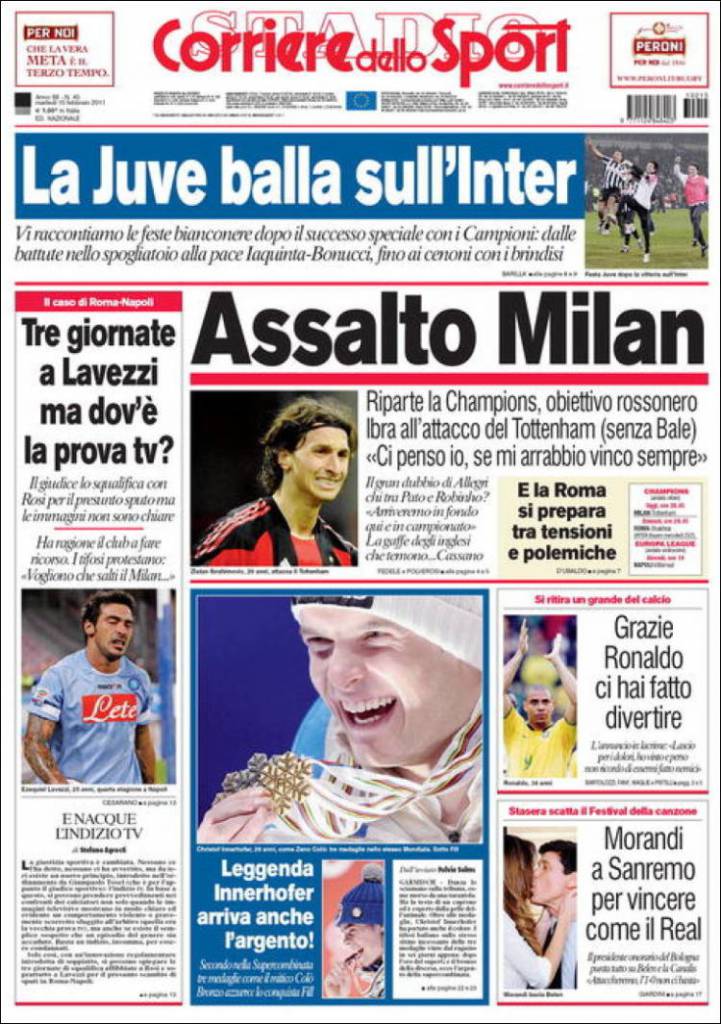 CORRIERE MILAN CHAMPIONS – Anche il Corriere dello Sport parla del match di questa sera tra Milan e Tottenham nell’andata degli ottavi di finale di Champions League.