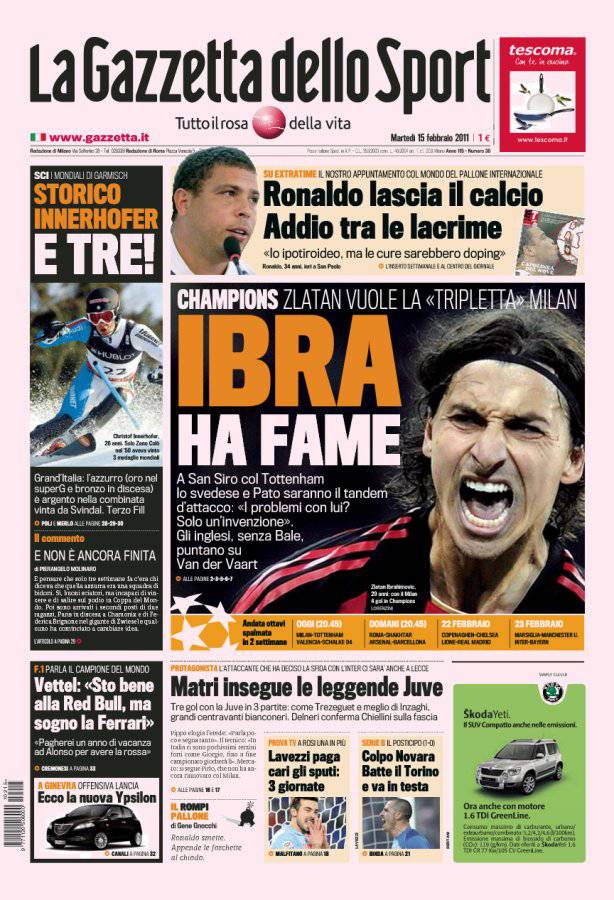 GAZZETTA MILAN CHAMPIONS – Sulla Gazzetta dello Sport si parla del match di Champions League in programma questa sera tra Milan e Tottenham nell’andata degli ottavi di finale.