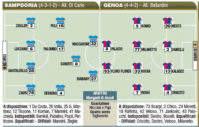 FANTACALCIO SAMPDORIA GENOA DERBY – Sampdoria e Genoa sono pronte per affrontarsi in un accesissimo derby. Ecco le probabili formazioni firmate Corriere dello Sport.