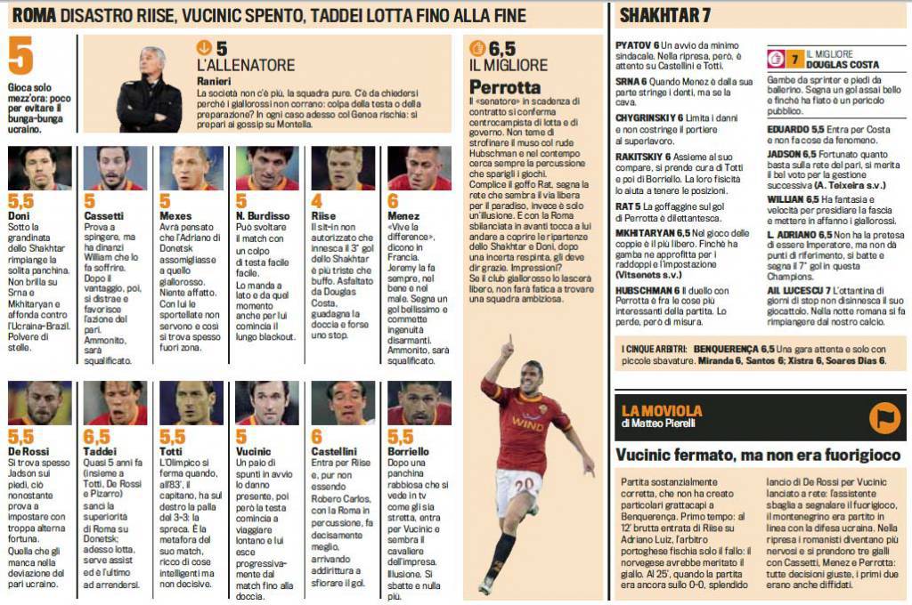 CHAMPIONS LEAGUE VOTI PAGELLE GAZZETTA – La Roma esce sconfitta all’Olimpico dallo Shakthar nell’andata degli ottavi di finale di Champions League per tre a due. Ecco i voti e pagelle della Gazzetta dello Sport.