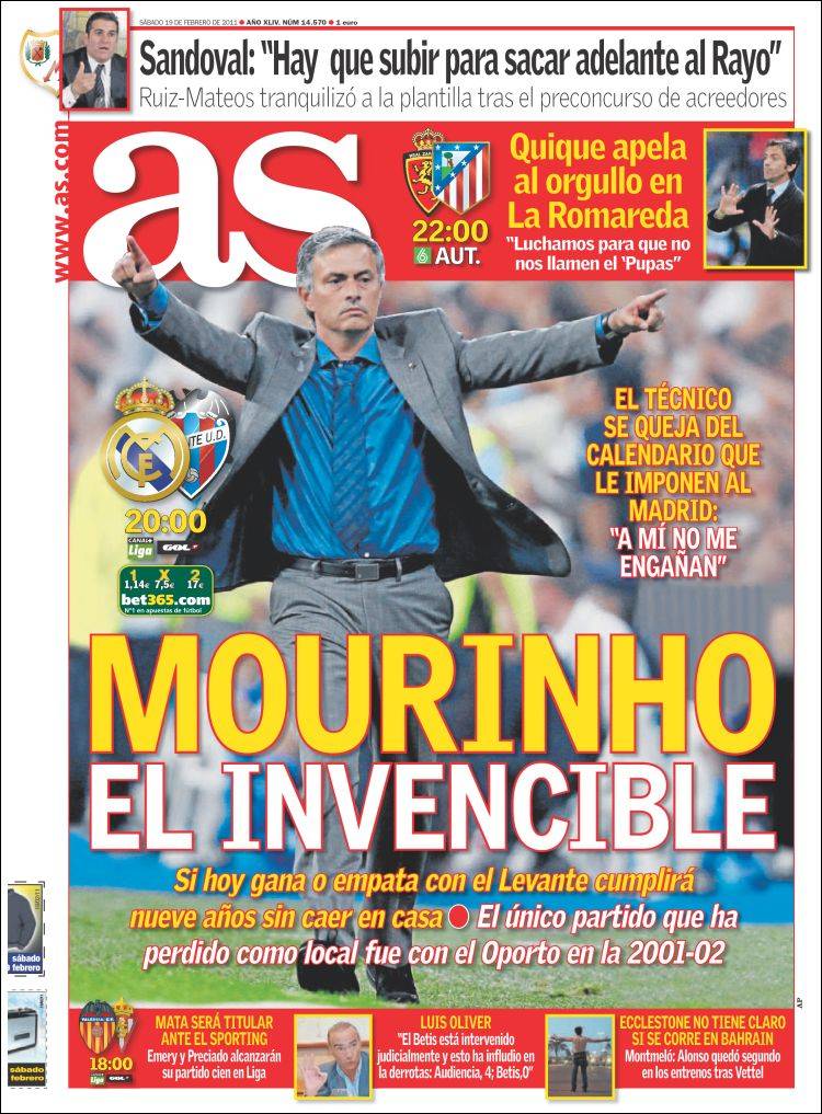 AS MOURINHO – Sul quotidiano spagnolo As si parla del record di vittorie casalinghe di Josè Mourinho tecnico del Real Madrid.