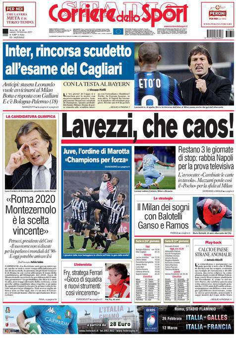 CORRIERE LAVEZZI – Sul Corriere dello Sport si parla invece della squalifica di Lavezzi che è stata confermata. Il Napoli ha attaccato il Giudice Sportivo.
