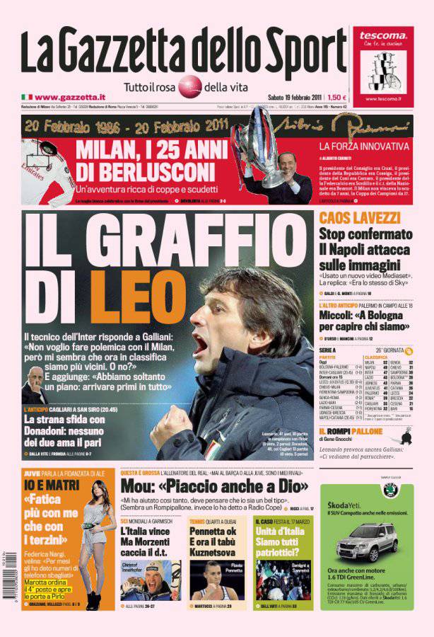 GAZZETTA LEONARDO INTER – Sulla Gazzetta dello Sport si parla della polemica a distanza tra Leonardo e Galliani.