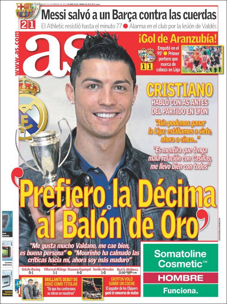 AS RONALDO – Sul quotidiano As parla Ronaldo che rivela di voler vincere la Champions League piuttosto del Pallone d’Oro.