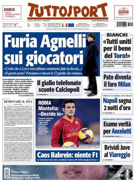 TUTTOSPORT AGNELLI JUVENTUS – Anche Tuttosport ha come tema principale le dichiarazioni del presidente Juventus Agnelli che ha strigliato i giocatori.