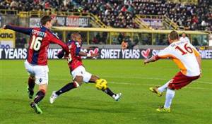 ROMA BOLOGNA VOTI PAGELLE TABELLINO / Roma batte Bologna 1-0 (1-0). Bologna (4-3-1-2): Viviano 6, Casarini 4,5, Esposito 5,5, Cherubin 5,5, Rubin 6 (43′ st Morleo sv), Mutarelli 6 (25′ st Siligardi 6), Mudingayi 6, Della Rocca 5,5, Ramirez 5,5, Meggiorini 5,5 (25′ st Paponi 5,5), Di Vaio 5,5. (22 Lupatelli, 6 Britos, 24 Buscè, 4 Krhin). All.: Malesani 5,5. Roma (4-2-3-1): Doni 6, Cassetti 6,5, Burdisso 6, Mexes 6,5, Riise 6, De Rossi 7, Pizarro 7, Taddei 6, Simplicio 6 (33′ st Brighi sv), Vucinic 6,5 (38′ st Menez sv), Borriello 5 (28′ st Totti sv). (27 Julio Sergio, 4 Juan, 87 Rosi, 23 Greco). All.: Montella 7. Arbitro: Banti di Livorno 5,5. Rete: nel pt 45′ De Rossi. Angoli: 4-4. Recupero: 0 e 5′. Ammoniti: De Rossi, Paponi e Ramirez per gioco scorretto, Mexes per proteste. Spettatori: 18mila circa. ** IL GOL -45′ pt: Vucinic ruba palla a Casarini sul vertice basso dell’area e serve De Rossi che si libera e fa partire un tiro che, con la decisiva deviazione di Cherubin, beffa Viviano.