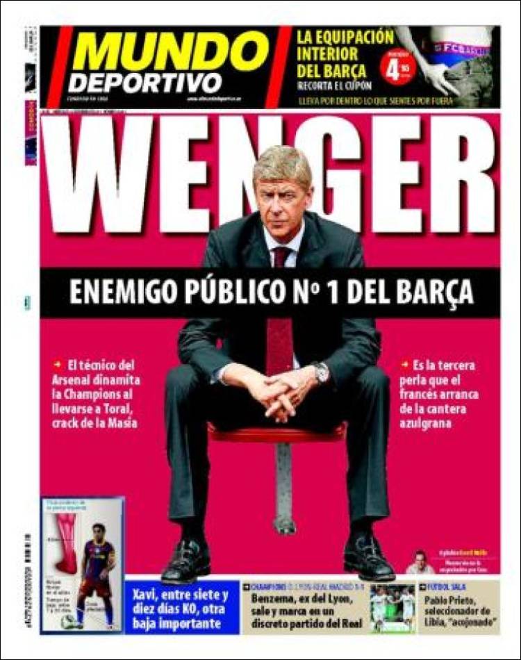 MUNDO DEPORTIVO WENGER BARCELLONA – Il manager dell’Arsenal Wenger fa un altro sgarbo al Barcellona e dopo aver scippato Fabregas da giovane ora fa lo stesso con il talento Toral.