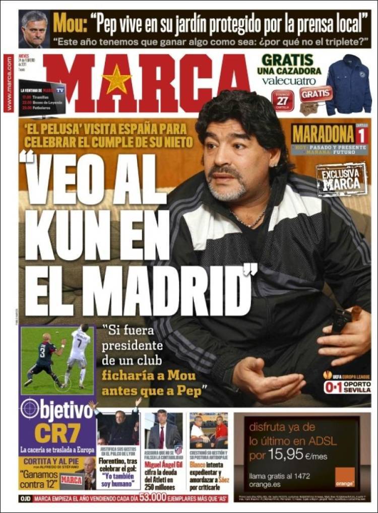 MARCA REAL MADRID – Sul quotidiano Marca intervista esclusiva a Maradona che vorrebbe vedere il genero Aguero al Real Madrid.