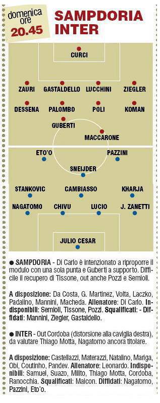 FANTACALCIO SAMPDORIA INTER PROBABILI FORMAZIONI – Domenica pomeriggio a Genova l’Inter farà visita alla Sampdoria. Giornata importante per Giampaolo Pazzini. Le probabili formazioni secondo il Corriere dello Sport.